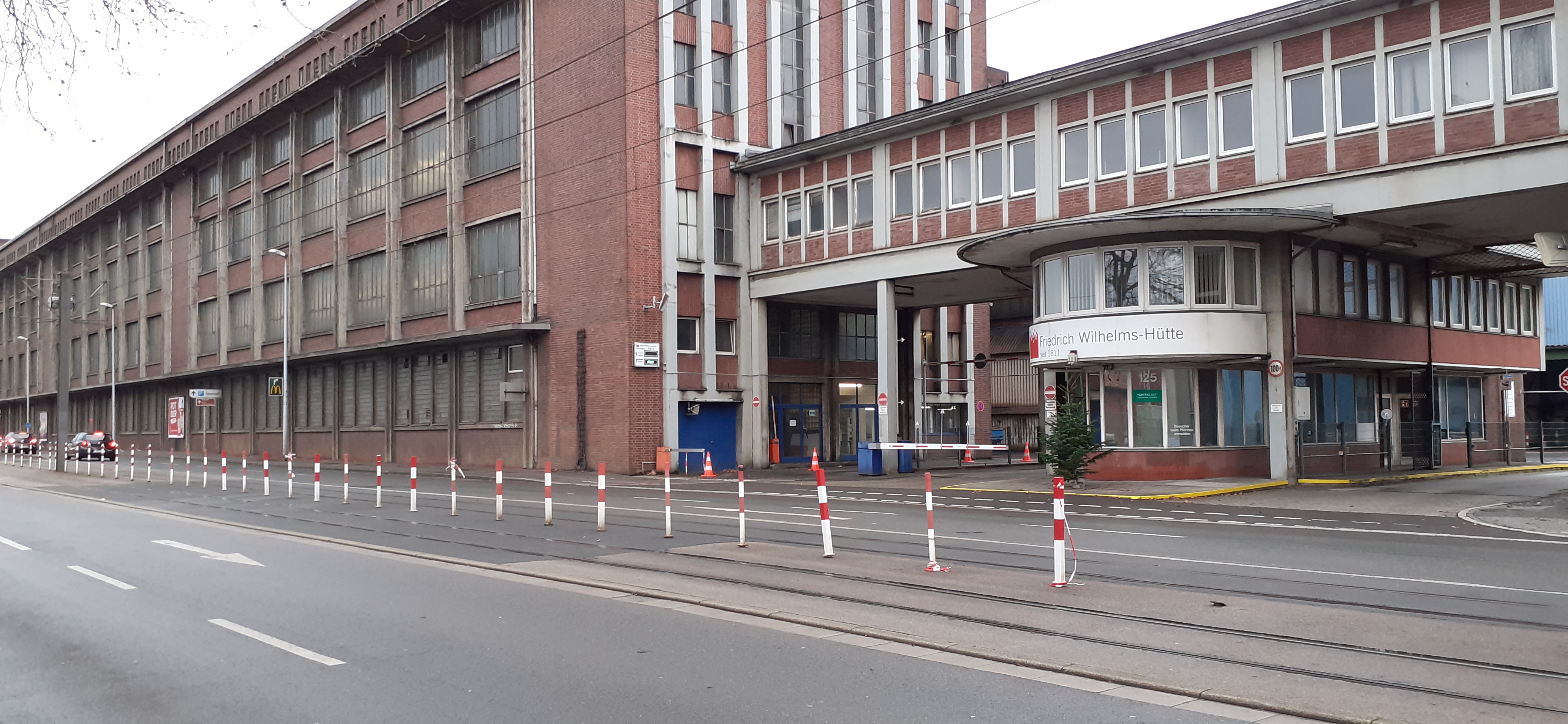 Auch der Pförtner 1 ist in diesen Bedeutungszusammenhang einzubeziehen. Darüberhinaus verdeutlicht das Werkstor einen ebenfalls in der ganzen Industriegeschichte wichtigen Ort, an dem öffentlicher Raum und Geltungsbereich der Werksordnung aneinandergrenzen. Das Pförtnergebäude der Friedrich Wilhelms-Hütte ist eine bemerkenswerte Beitrag zur Gestaltung dieser Nahtstelle in Formen der 1950er Jahre.