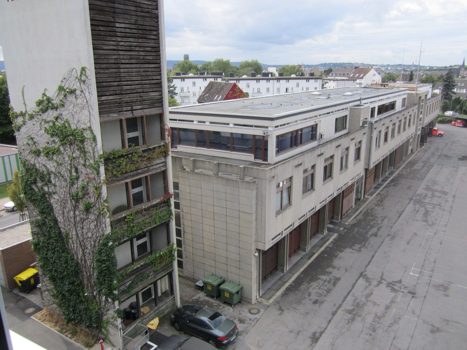 Geprägt wird die Architektur auch durch das konstruktive System mit einer Trennung von Tragstruktur und wandabschließenden Bauteilen. Primäre Tragglieder sind die auch in den Außenansichten der Langseiten in Erscheinung tretenden Stützen. Diese Stützen setzen sich im Obergeschoß als Querwandschotten und halbe Rahmenelemente fort, die sich mit ihren Horizontalteilen zur Gebäudemitte verjüngen und hier, durch in den Fluren sichtbare Gleitlager zusammengefügt sind.