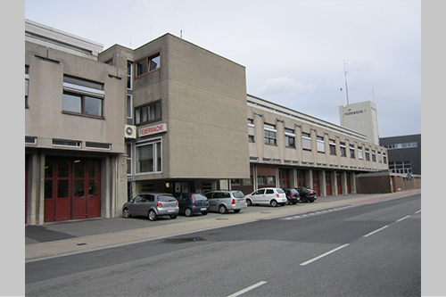 Die Feuerwache I entstand in mehrjähriger Bauzeit nach Plänen des Architekten und Aachener Hochschulprofessors Rudolf Steinbach unter Mitwirkung von Dipl.-Ing. H. Kohl.