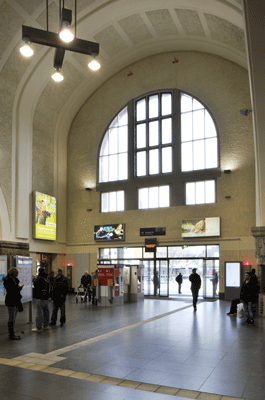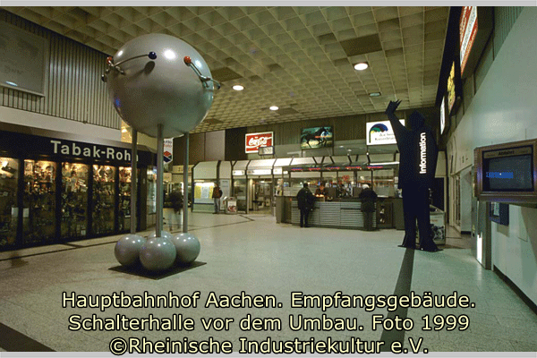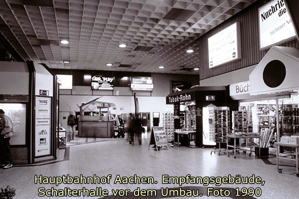 Im Inneren wurde das Reisezentrum in den früheren Wartesaal III. Klasse verlegt, die Bahnhofsgaststätte in einen Buch- und Zeitschriftenladen umgewandelt und weitere Ladeneinbauten in einheitlichem Design neu gestaltet ohne den Raumeindruck der Eingangshalle zu stören.