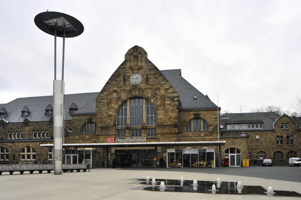 Ab 1902 begann Eisenbahnarchitekt Mettegang mit den Planungen für einen neuen Hauptbahnhof an fast derselben Stelle wo schon der bisherige der Rheinischen Eisenbahngesellschaft stand. Es wurde ein provisorisches Ersatzgebäude errichtet, damit der Bahnverkehr weiter laufen konnte. Baubeginn war Anfang 1903 und kurz vor Weihnachten am 22.12.1905 konnte das neue Empfangsgebäude eröffnet werden.