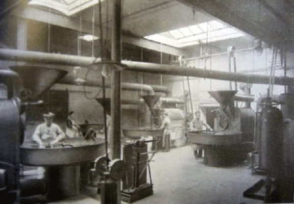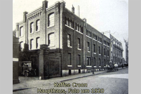 Der Begriff "Kolonialwaren" bezeichnet überseeische Erzeugnisse und Lebensmittel, insbesondere Kaffee, Zucker, Tabak, Reis, Kakao, Gewürze und Tee - dabei gehörte der Kaffee-Handel schon damals zum Hauptgeschäft. Kaffee wurde durch Agenten oder befreundete Handelhäuser in Amsterdam, Antwerpen oder Rotterdam gekauft, per Schiff nach Uerdingen oder Maastricht gebracht, und von da per Achse nach Aachen gefahren. Anfangs hatte die kleine Firma ihren Sitz in der Krämerstraße in Aachen. Sie wuchs unentwegt und siedelte zweimal innerhalb Aachens um, bis sie letztlich 1880, auf das Grundstück Mathiashofstr. 40, Ecke Franzstraße erwarb und bis 1887 das erste Gebäude auch zum Brennen und Rösten von Kaffee erbaute. 1907/08 entstand auf ehemaligem Kasernengelände ein Erweiterungsbau. Die Lage in der Mathiashofstraße war schon damals im Hinblick auf die Nähe zum Aachener Hauptbahnhof sehr verkehrsgünstig und vor allem was die Versendung des Kaffees anbetrifft optimal.