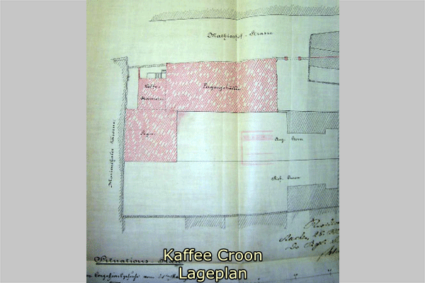 a. Ich betreibe Colonialwaren-Engrosgeschäft verbunden mit Caffeebrennerei, Caffeeleserei und Packerei, die Caffeebrennerei ist in einem Nebengebäude, der ganze übrige Betrieb im Hauptgebäude untergebracht. b. Das Hauptgebäude und das Nebengebäude, in welchen der ganze Betrieb stattfindet, sind in Aachen, Mathiashofstraße 40 belegen. Die Lage zur Umgebung ergibt sich aus beikommendem Situationsplane in duplo. Von den Arbeitern werden benutzt: Die gesamten Lagerräume des Hauptgebäudes, bestehend aus Keller, Räume im Parterre, Räume in der II. Etage. Diese sind alle gleich groß und zwar je 255,36qm. Innerhalb dieser zu allgemeinen Lagerarbeiten bestimmten Räumen sind vorhanden und für sich von übrigen Räumen abgetrennt: 1. im Parterre ein kleiner Packraum, 2. in der II. Etage eine Caffeeleserei nebst Waschraum. Das Nebengebäude enthält die Caffeebrennerei. c. [...] Im Gebäude führt eine 1,25 Meter breite, eiserne Treppe bis zum obersten Stockwerk, eine 1,35 Meter breite Steintreppe zum Keller. d. Es werden im Maximum beschäftigt: 1. in der Caffeebrennerei 6 Arbeiter 2. in der Caffeeleserei 24 Arbeiter 3. in der Packerei 4 Arbeiter 4. in allen anderen Räumen, welche durcheinander gebraucht werden 10 Arbeiter e. In der Caffeebrennerei befinden sich ein 3 1/2 Pferde starker Electromotor und 3 Caffeeröstapparate. Alle sind mit der Gebäudewand fest verbunden. f. Es befinden sich auf dem Hofe 4 Aborte, welche mit Spülung versehen sind. g. Das ganze Gebäude ist an die städtische Wasserleitung angeschlossen und sind an Stellen zugänglich angebracht, an welchen die Arbeiter Trinkwasser entnehmen können. h. An den Caffeeleseraum ist ein Raum angebaut, welcher zur Aufbewahrung der Kleider, sowie als Waschraum dient. Ein Speiseraum ist nicht vorhanden und auch nicht erforderlich.