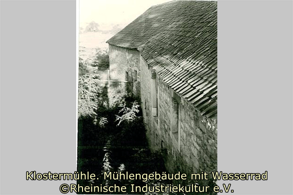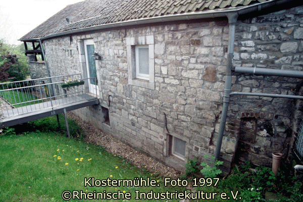 1926 wurden die Mühlsteine abgerissen. Zu diesem Zeitpunkt war das Mühlrad bereits entfernt. Das nebenstehende Foto zeigt die Rückseite des Mühlengebäudes an der sich ehemals das Mühlrad und der Mühlgraben befanden.