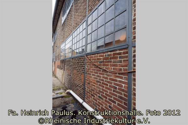 Schließlich ist die Fabrikanlage der Fa. Paulus Teil der Aachener Industriegeschichte, und verdeutlicht den Prozess der Randwanderung eines Teils der Industrie. Bemerkenswert ist in diesem Zusammenhang die trotz abseitiger Lager verwirklichte aufwendige Architektur für die Schauseite des Werks. Hier wird einmal mehr der werbende Charakter von Industriearchitektur deutlich, ihre Rolle zur Selbstdarstellung des Unternehmens gegenüber Kunden und nicht zuletzt auch gegenüber den eigenen Beschäftigten.