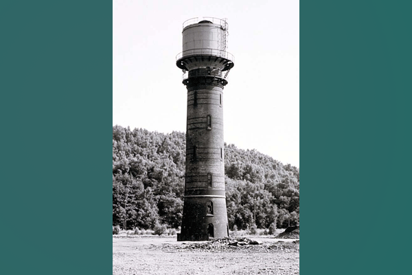 Über einem gemauerten Turmschaft mit schmalen Rundbogenfenstern erhebt sich ein Intzebehälter (300 m3 ) aus genieteten Stahlblechen. Der Schaft ist gegliedert durch einen leicht vorspringenden, mit Kunststein abgedeckten Sockel. Auf dem hellen Mauerwerk des Turmschaftes heben sich die mit roten Ziegeln gemauerten Fensterlaibungen und horizontale Streifen im Bereich der Fenster ab. Am oberen Rand des Turmschaftes und am Behälter befinden sich rundumführende Betriebsstege. Der Turm lieferte noch bis zuletzt das Wasser für die Löschtürme der Koksofenbatterien.