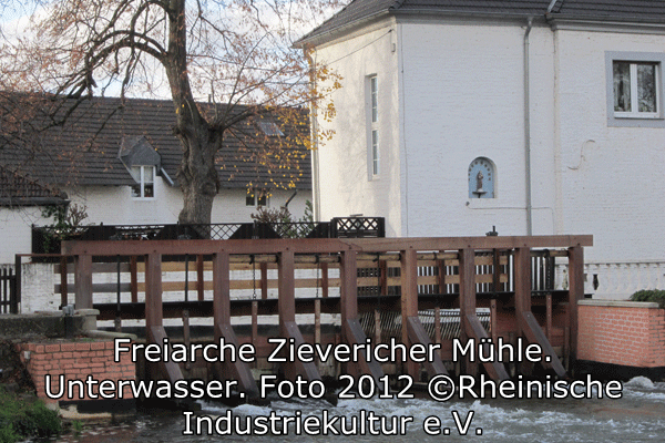 Abweichend vom allgemein üblichen System der Kraftversorgung von Mühlen entstanden an der Erft keine parallel zum Flusslauf angelegten Mühlengräben. Die 26 Mühlen zwischen Kerpen und der Rheinmündung waren vielmehr direkt am Fluss errichtet worden. Quer durch den Fluss reichende Wehre, die so genannten „Freiarchen“ waren mit teilweise 10 Wehrtafeln bestückt und regulierten die Wasserzufuhr auf die Wasserräder der Mühlen. Zwei dieser beeindruckenden hölzernen Wasserbauwerke an der Zievericher Mühle in Bergheim und an der Gusdorfer Mühle in Grevenbroich sind erhalten.