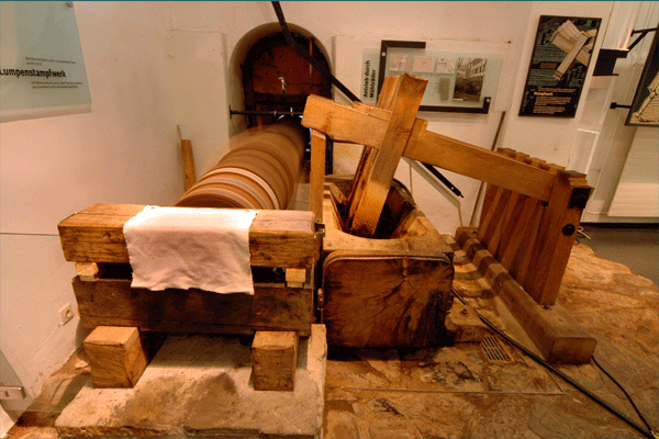 Darüber hinaus sollte das Museum die ehemalige Raumstruktur und -nutzung aufgreifen. Die Papiermühle war aber sowohl durch die Umbauten in der Produktionsphase als auch beim Umbau zu Wohnungen wiederholt verändert worden. Außerdem behandelt das Museum mit der Darstellung der Papierverwendung und der Industrieproduktion auch Themen, die über die historische Nutzung der Alten Dombach hinausgehen. Auf der anderen Seite arbeiteten ja zeitweise zwei Betriebe unter den Dächern der Alten Dombach, aber räumliche Doppelungen sollte es natürlich nicht geben.