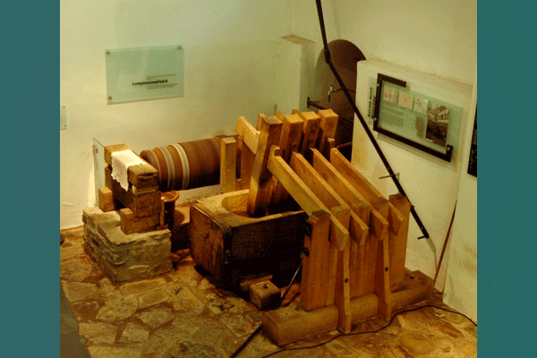 1805 beschrieb August Friedrich Alexander Eversmann die Zweckmäßigkeit eines neuen Trockenhauses von Gustav Müller und bezog sich dabei sicherlich auf das "Fabrickgebäude und Drockenhaus". Bei den Bauarbeiten wurden im Erdgeschoss in einem separaten Raum drei in den Boden eingelassene, ca. 0,80 x 2,20 m messende Becken mit Wasserzu- und -abführung freigelegt. In der Decke befanden sich genau über diesen Becken Aussparungen. Im ersten Obergeschoss wurden also vermutlich Hadern sortiert und dann nach unten in die Wasch- und Faulbecken geworfen.