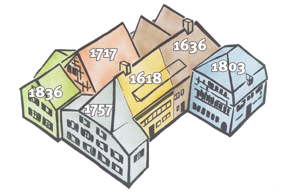 An mehreren Stellen wurden aussagekräftige Baubefunde so in Szene gesetzt und erläutert, dass die Besucher Einblick in die Rekonstruktion der Baugeschichte bekommen und die Arbeit der Historiker und Bauforscher nachvollziehen können. Anhand dieser "Inseln" zur Baugeschichte ist ein Parallel-Rundgang durch die Alte Dombach möglich, der die Geschichte der Gebäude erfahrbar macht.