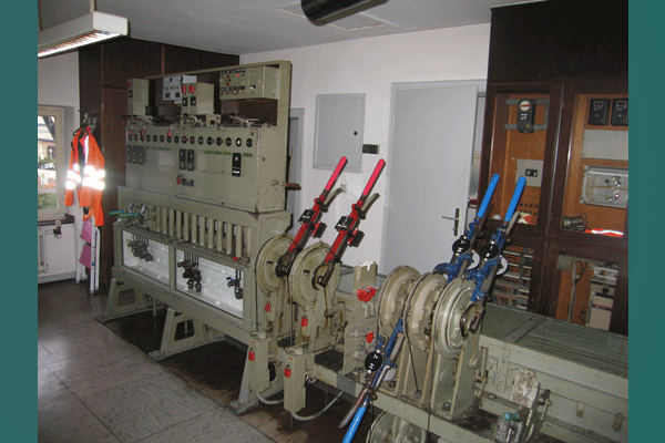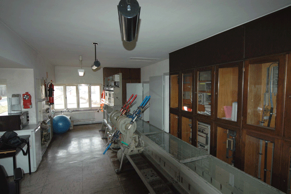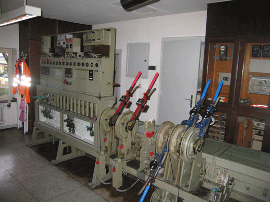 Im Inneren ist im Fahrdienstleiterraum die Hebelbank mit Blockwerk erhalten. Auf der ursprünglich voll mit Hebeln besetzten Hebelbank sind heute noch drei Weichen- und zwei Signalhebel vorhanden. Mit den Weichenhebeln wird die westlich dem Stellwerk vorgelagerte Weiche bedient. Hier geht die bis dahin aus Bonn zweispurig geführte Trasse in eine einspurige Streckenführung über. Mit den Signalhebeln werden zwei westlich und östlich vor dem Stellwerk angeordnete Signale bedient. Im Erdgeschoß sind unter den erhaltenen Hebeln die Umlenkrollen und Gewichte angeordnet.