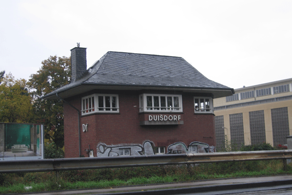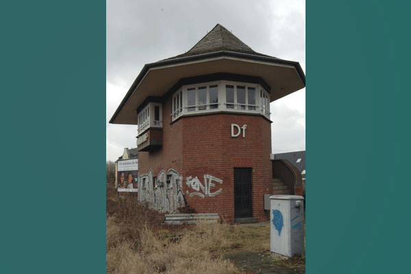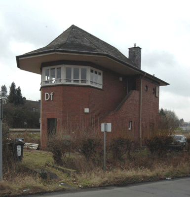 Erhalten blieb das 1939 erbaute Stellwerk an der Rochusstraße. Es handelt sich um einen Backsteinbau auf lang gestrecktem Grundriss mit verschiefertem Walmdach. Die östliche Schmalseite ist im Grundriss polygonal ausgebildet. Eine offene Treppe mit massiv in Backstein gemauerter Brüstung führt dort über einen gebäudehohen Eingangserker zum Raum des Fahrdienstleiters im ersten Stock. Die Schrägseiten am polygonalen Ostgiebel sind im Obergeschoß vollständig mit umlaufenden Fenstern versehen. Weiterhin öffnet sich der Fahrdienstleiterraum mit einem Erker zur Gleisseite. Der Erker und die westliche Gebäudeecke sind mit Fensterbändern versehen. Im Erdgeschoß führt an der östlichen Schmalseite eine Tür zum Raum mit den Umlenkrollen. Die Türschwelle und die Kragplatte für den Erker sind in scharriertem Kunststein ausgeführt.