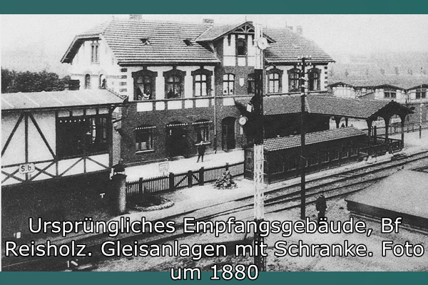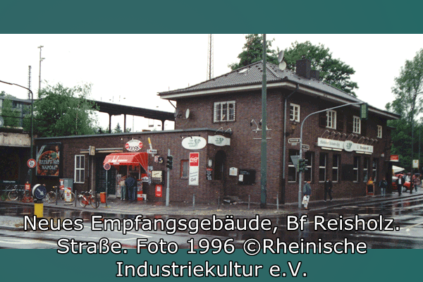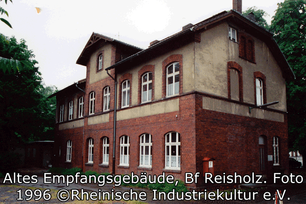 Als konstitutiver Ausgangspunkt für die industrielle Besiedlung von Reisholz muss der 1898/99 entstandene Bahnhof gelten. Er ist in wichtigen baulichen Bestandteilen erhalten und besteht aus Empfangsgebäude, Wohnhaus und Zwischentrakt für Aborte und Nebenräume.