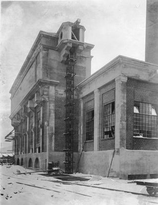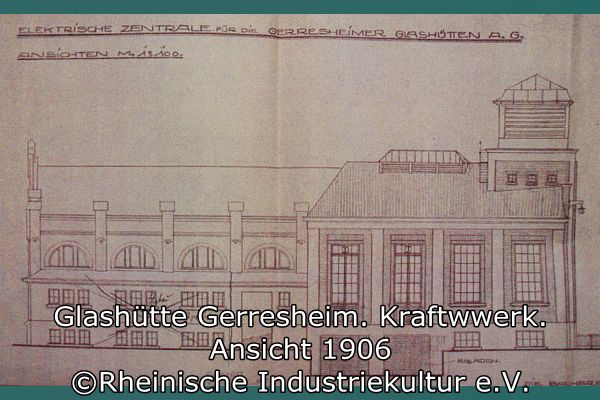 Die Glashütte begann 1906, sich durch eine eigene ‚Zentrale’ – eine von einer Kolbendampfmaschine mit 550 KW Leistung angetriebene Anlage – mit elektrischem Strom zu versorgen. Dieses Ziegelbauwerk entsprach mit seiner Architektur weitgehend noch dem Historismus.