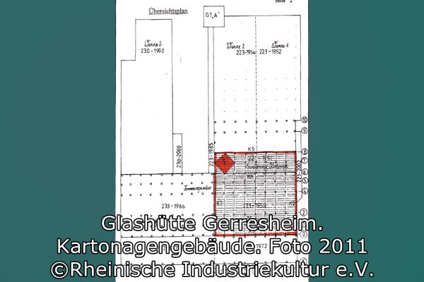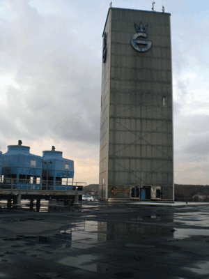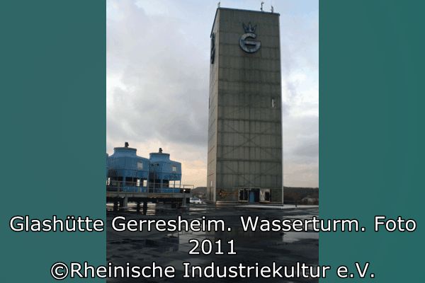 Der markante „Gerrix-Turm“ mit dem Wahrzeichen der Hütte, dem G mit Krone, wurde nach Entwürfen des werkseigenen Baubüros 1966 errichtet. Sein 1955 errichteter Vorgänger war 1964 abgebrannt. Als Fundament des Turms fungiert die Kartonagehalle, das Gebäude unter ihm.