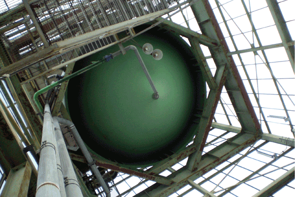 Maschinenhaus im Vordergrund, Kesselhaus im Hintergrund. Foto 2011