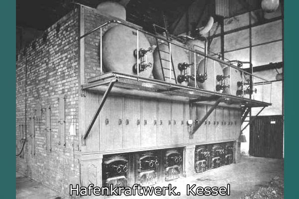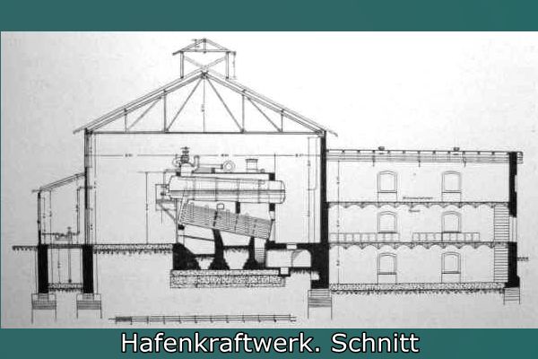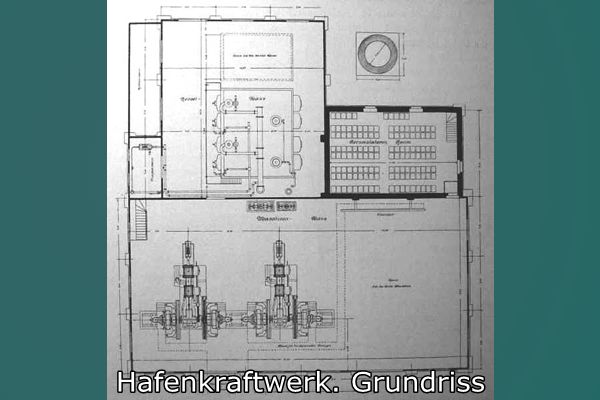 Alle elektrischen Verkabelungen sowie Rohre lagen im Kellergeschoss der Maschinenhalle. Das Erdgeschoss im Maschinenhaus war nur teilunterkellert und hatte eine Raumhöhe von 2,50m. Die Unterkellerungen lagen unter den zwei Dampfmaschinen. Sie dienten der Rohrführung die zur Wasserversorgung der Kondensationspumpe notwendig waren. Die Kondensationspumpe wurde entweder durch das unterm Keller liegende Wasserreservoir gespeist oder bei hohem Rheinwasserstand über die Zubringerpumpe die zischengeschaltet war, zwischen der Kondensationspumpe und dem Saugbrunnen. Der Saugbrunnen war durch eine 500mm große Rohrleitung mit dem Hafenbecken verbunden.