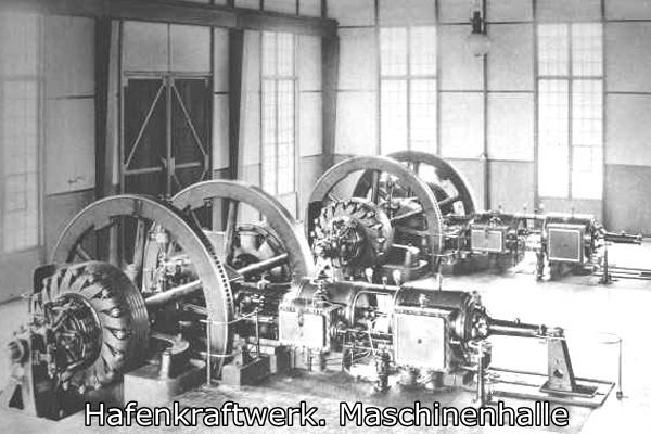 Diese Erweiterung war für alle Gebäude möglich die zur eltektrischen Versorgung des Hafens notwendigen waren als da noch wären das Maschinenhaus welches noch für eine weitere Dampfmaschine Platz bot sowie für das Accumulatorenhaus welches nur auf dem Erdgeschoss mit Accumulatoren versehen war und welches im Kellergeschoss sowie Obergeschoss noch Platz bot. Die Erweiterung war für etwaige Erweiterung des Hafens gedacht. Wenn dies geschehen sollte brauchte kein neues Maschinenhaus installiert werden um den neuen Anforderungen des somit steigenden Strombedarfs zu decken. Das Maschinenhaus beinhaltete zwei liegende Verbundmaschinen von jeweils 250 bis 313 PS und hintereinander angeordnete Dampfzylindern mit 120 Umdrehungen pro Minute. Über verlängerte Kurbelwellen waren an den Verbundmaschinen jeweils noch zwei Dynamos mit besonderen Stromwechslern. Sie hatten eine Leistung von 100kW/h bei 250V Spannung pro Dynamo. Dem hinzu kam noch je ein Doppeldynamo als Zusatzmaschine zum Laden der Accumulatoren, diente zugleich als Ausgleichsdynamo. Um mögliche Reperaturen im Maschinenhaus vorzunehmen gab es einen Laufkran mit einer Tragkraft von 10t.