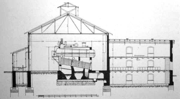 Das Kesselhaus beinhaltete zwei Zirkulationskessel mit einem Druck von 10bar und einer wasserumspülten Heizfläche von 228,5m². Die Leistungsfähigkeit der Kessel betrug 3,5t Dampferzeugung pro Stunde. Das Kesselhaus war so geplant das eine Erweiterung um einen Kessel probelmlos möglich wäre.