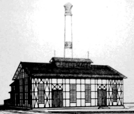 Das Kesselhaus war wie auch das Maschinenhaus in Eisenfachwerk mit Ziegelsteinausfachungen ausgeführt und hatte zudem noch einen kleinen Anbau wo der Kohlen- und Pumpenraum untergebracht waren. Das Kesselhaus war durch ein großes zweiflügeliges Tor von außen erreichbar und durch eine Schiebetüre mit dem Maschinenhaus verbunden. Zudem war der Kohlenraum durch zwei Schiebetüren vom Kesselraum getrennt.