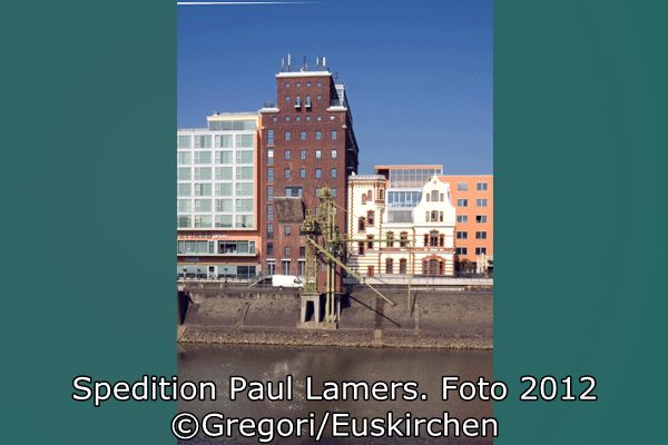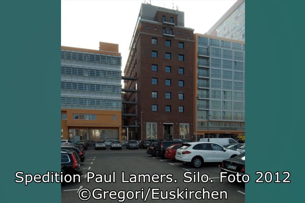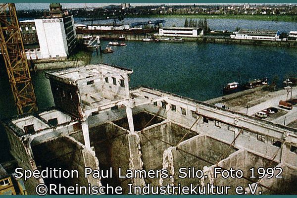 Das 8. OG ist als Vollgeschoss ausgebildet. Das 9. und 10. Geschoss haben eine verringerte Breite und Länge und bilden zur Speditionsstraße und zum Hafenbecken einen einräumigen Dachaufsatz (Speditionsstraße nur 9. Geschoss) (Bild5.1¬5.3:Grundriss und Schnitte, im Anhang als Kopie). Im Zusammenhang mit der Umstrukturierung des Düsseldorfer Hafens an der Speditionsstraße 1997 sollte für die drei Gebäude der Firma Paul Lamers eine neue Nutzung gefunden werden. Das Speichergebäude von 1896, sowie sämtliche Nebengebäude (Toiletten, Schlosserei, etc.) wurden abgebrochen. Das Bürogebäude wurde, obwohl es nicht unter Denkmalschutz steht, erhalten. Das Silogebäude sollte unter denkmalpflegerischen Gesichtspunkten umgenutzt werden. Die Lösch- und Ladeanlagen sollen erhalten werden.