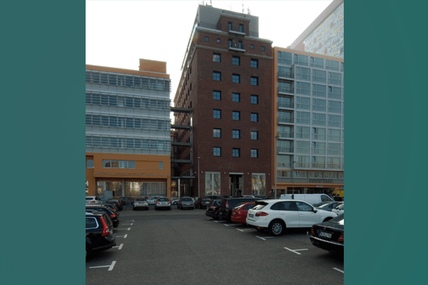 Auf dem Grundstück Speditionsstraße 11-13 entsteht ein Hotel ein Bürogebäude und Wohnfläche. Für das Hotel ist ein Neubau anstelle des alten Lagerhauses geplant, für das denkmalgeschützte Speichergebäude eine Büronutzung vorgesehen. Das Bürohaus soll in abgeschlossene Etagen unterteilt werden, die einzeln vermietet werden können. Diese Art der Umnutzung macht größere Veränderungen im Bestand nötig, da Raumbelichtung, Wärmeschutz und Raumdisposition eines Speichers nicht für eine Büronutzung geeignet sind.