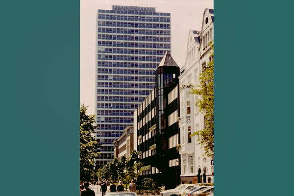 Der Mannesmann-Konzern erreichte in den Jahren nach dem Zweiten Weltkrieg durch inneres Wachstum sowie durch Übernahmen eine vorher nicht gekannte Größe – auch hinsichtlich der Zahl der Mitarbeiter. Der nach 1937 und in der ersten Hälfte der 1950er Jahre nochmals erweiterter „Behrensbau“ reichte als Verwaltungsgebäude schon lange nicht mehr aus; immer mehr Mitarbeiter mussten außerhalb untergebracht werden, was die Zusammenarbeit erschwerte und mit höheren Kosten verbunden war. Deshalb entstand in der zweiten Hälfte der 1950er Jahre neben dem Behrensbau ein weiteres Verwaltungsgebäude für rd. 900 Beschäftigte. Dieses wurde von Paul Schneider-Esleben geschaffen; es war das erste moderne Hochhaus in Deutschland und wurde im Stil von Mies van der Rohe errichtet.