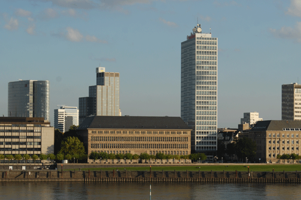 Man dachte an den Bau eines weiteren Verwaltungsgebäudes für rund 900 Mitarbeiter in der unmittelbaren Nähe des Stammhauses. Allerdings war die vorhandene Fläche am Rheinufer klein, und der Behrensbau sollte in seiner Außenwirkung auf keinen Fall beeinträchtigt werden. An dem Ideenwettbewerb für das neue Verwaltungsgebäude beteiligten sich sechs namhafte Architekten. Ein Gutachterkollegium, bestehend aus Prof. Paul Bonatz, Stuttgart; Prof. Friedrich Tamms, Düsseldorf; und Staatssekretär a. D. Dr. Conrad Rühl, Düsseldorf; schlug den von Dipl.-Ing. Paul Schneider-Esleben eingereichten Entwurf zur Ausführung vor.