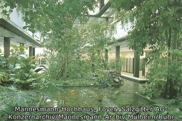 Als das Stammhaus gebaut wurde, konnte man selbstbewusst zum Ausdruck bringen, dass man die technischen und finanziellen Schwierigkeiten der Anfangsjahre überwunden und auch im harten Kampf gegen die vereinigte Konkurrenz den Sieg davon getragen hatte. Nun konnte man in moderner, zeitgemäßer Form zeigen, dass man nach der politisch erzwungenen Autarkie, nach Krieg und den die Existenz des Unternehmens bedrohenden Kriegsfolgen wieder da war und dass man weiterhin zu den innovativen Unternehmen zählte. Dieses erste Hochhaus mit einer reinen Stahlrohr-Tragwerk-Konstruktion hatte nicht nur eine große ästhetische Wirkung, es war zugleich ein Symbol für den leistungsstarken Röhrenkonzern auf eigener Rohstoff- und Halbzeuggrundlage.