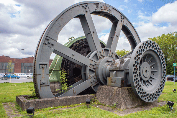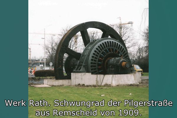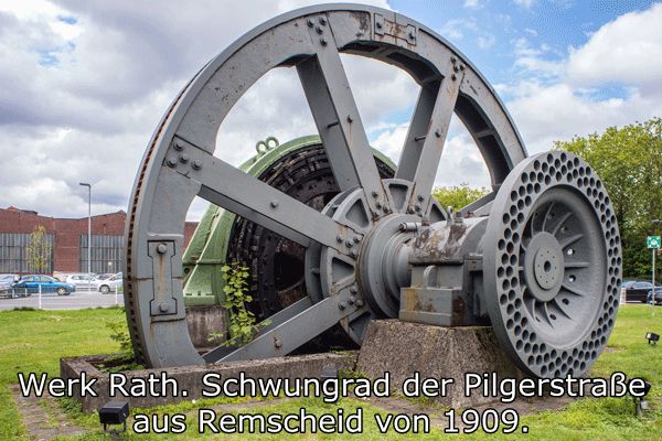 • Schwungrad aus dem Werk Lierenfeld, verbunden mit einem Antriebsaggregat aus Rath.