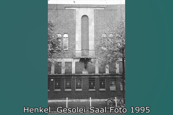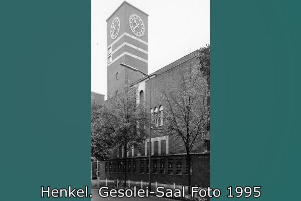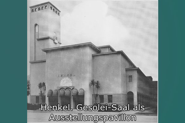 Der Gesolei-Saal wurde nach einem Entwurf von Walter Furthmann 1925/26 für die Ausstellung "Gesundheitspflege, soziale Fürsorge und Leibesübungen" (Gesolei) in Düsseldorf gebaut. Henkel hatte sich aus Anlass des 50jährigen Bestehens zur Teilnahme an der Ausstellung entschlossen und konnte nach der Ausstellungseröffnung im Mai schon Mitte Juni den millionsten Besucher empfangen. Furthmann hatte für die Ausstellung eine Stahlkonstruktion entworfen, mit einer Leichtbauweise für Innen- und Außenwände aus Holzriegeln, einer Ausfachung aus Bakula und anschließendem Verputz. Diese Bauweise wurde gewählt, weil die Halle später als Werkstattbau auf dem Werksgelände wiederverwendet werden sollte.