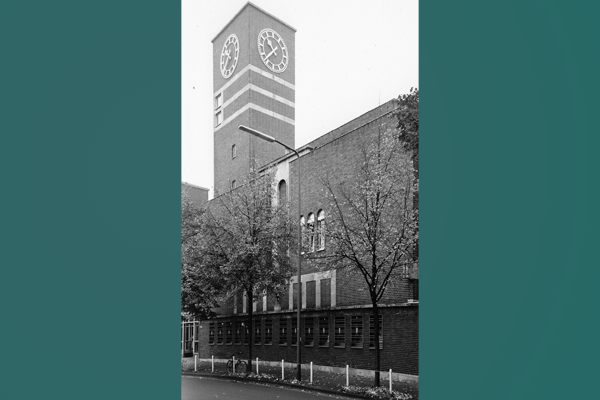 Halle und Uhrenturm des Gesolei-Saals. Foto: 1995