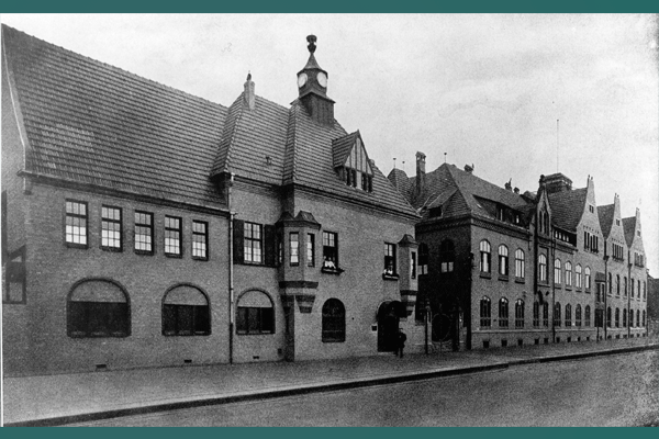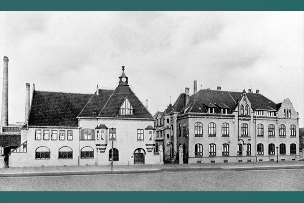 Erweiterung des Verwaltungsgebäudes von 1913 ganz rechts. Historisches Foto um 1915