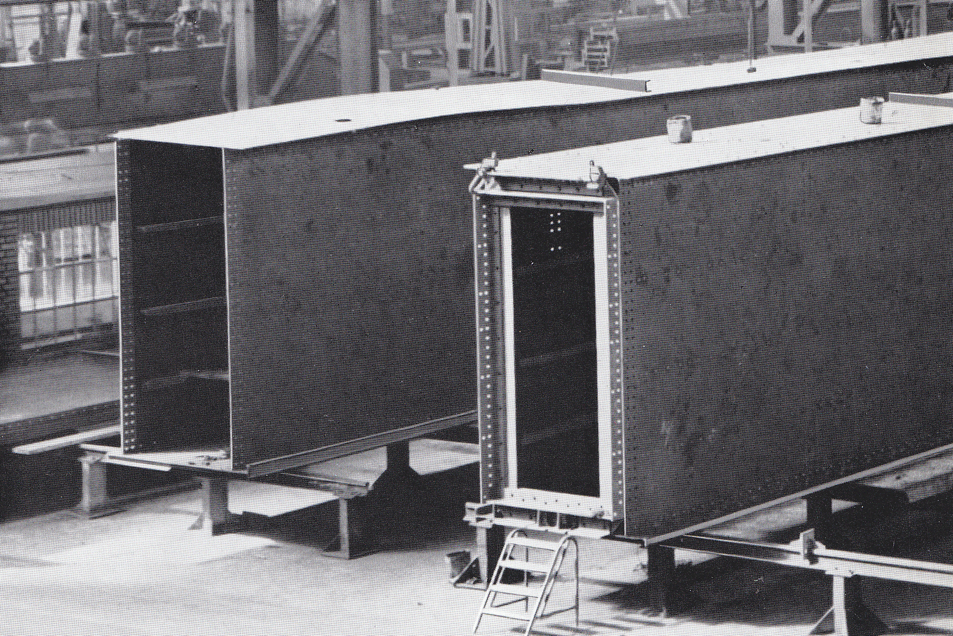 historisches Foto der Kastenträger vor dem Aufsetzen des Deckblechs von 1958