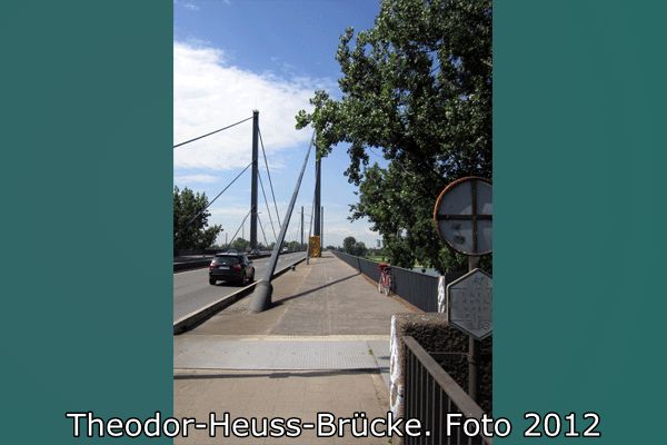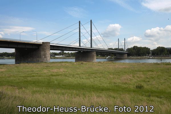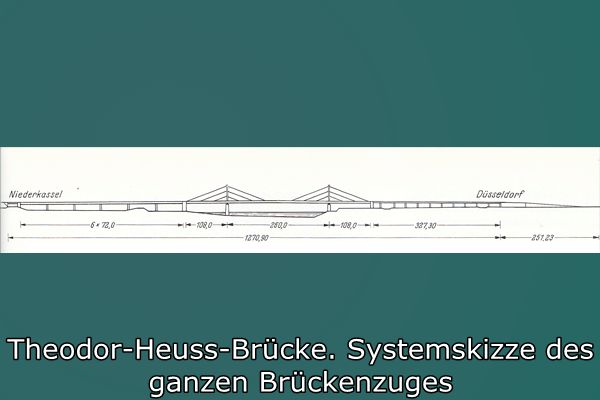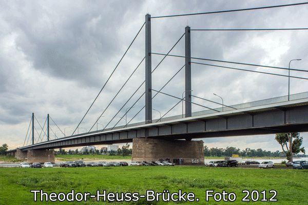Schon für die Erneuerung der Köln-Mülheimer Brücke wurde 1948 der Vorschlag des Schrägseilprinzips gemacht. Die Strömsund-Brücke entstand dann gleichzeitig mit der Theodor-Heuss-Brücke, wurde aber zwei Jahre früher fertig gestellt. Die Düsseldorfer Brücke ist für Deutschland als das Pionierbauwerk der dann so erfolgreichen Schrägseilbrücken zu verstehen. Es ist insofern ein Denkmal für die Konstruktionsgeschichte des Brückenbaus und bedeutend für die Geschichte des Menschen.