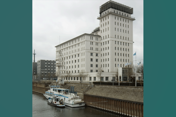 Enorme Investitionen werden für den Wiederaufbau benötigt. Die Militärregierung setzt sich nach dem Krieg verstärkt dafür ein, dass die Getreidespeicher und Mühlengebäude unverzüglich wiederaufgebaut und in Betrieb genommen werden. An die Mühlenbesitzer ergeht offiziell die Weisung, für die größtmögliche Lagerung in kürzester Zeit Sorge zu tragen, gilt es doch wiederum, von Duisburg aus, das Hinterland mit den nötigen Grundnahrungsmitteln zu versorgen. lm Zuge dieses Wiederaufbaus errichtet die Allgemeine Speditionsgesellschaft 1950 einen giebelständigen kleinen und 1954 einen viereinhalb-geschossigen Speicher. 1956 errichtet Werner & Nicola den 1994 gesprengten Stahlbetonsilo Mr. Softy und 1959 entsteht ein 5-stöckiger Mühlen- und Speicherkomplex der Duisburger Mühlen AG am Schwanentor (vormals Rosiny Mühlen AG, heute Stadtarchiv und Kultur- und Stadthistorisches Museum).