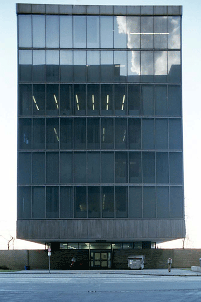 Das Hochhaus ist eine Stahlkonstruktion mit vorgehängten Fassaden. Die Eckstützen sind mit ihren Außenecken sichtbar. Die Fassade wird durch außerordentlich filigran wirkende, schmale Stahlprofile geprägt. Zwischen diesen Profilen sind raumhohe, schlank-hochrechteckige Fensterelemente eingefügt. Im Inneren gibt es zwei massive Kerne, die das zerbrechlich wirkende Gebäude aussteifen und die Treppen und Nebenräume aufnehmen. Die Einzel- und Gruppenbüros erstrecken sich entlang der Längsfassaden.