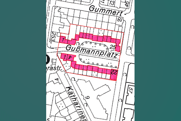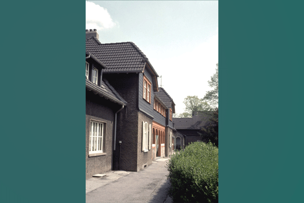 Von den ehem. über 600 vorhandenen 'Wohnhäusern der Siedlung sind nach Kriegszerstörungen und Abbrüchen nur drei Doppelhäuser, ein Einzelhaus, die Katholische Kapelle und eine Art von Reihenhausbebauung rund um den Gußmannplatz aus der Bauphase 1899-1910 erhalten geblieben. Die Verwendung von Holzfachwerk, die Gliederung der Baukörper durch Vor- und Rücksprünge, Giebel, Türmchen und Gauben sind Bestandteil dieser malerischen Architekturauffassung. Eine besondere Hausgruppe innerhalb der Siedlung sind die erhaltenen vier Pfründnerhäuser. Sie entstanden 1899-1910 für allein stehende Witwen und Witwer. Mit ihrem kräftigen Balkenwerk erinnern die Häuser sehr an Vorbilder aus England, die dort in Anlehnung an die Tudor-Architektur zur Jahrhundertwende in der Villenarchitektur und auch im Siedlungsbau verwirklicht wurden. Gegenüber den Pfründnerhäusern entstanden Erholungshäuser und ein Wöchnerinnenwohnheim, aus dem sich das heutige Krankenhaus entwickelte.