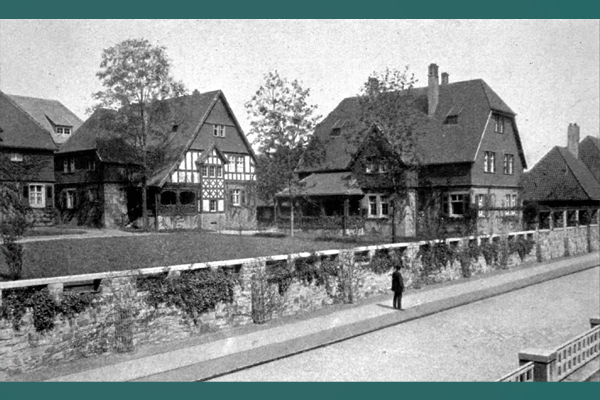 Die Siedlung, in mehreren Bauabschnitten seit 1892 erbaut, orientiert sich in städtebaulicher Hinsicht an den Prinzipien des von Camillo Sitte formulierten malerischen Städtbaus, während in architektonischer Hinsicht die Häuser mit reichem Fachwerk versehen an Tendenzen der historischen Architektur anknüpfen.