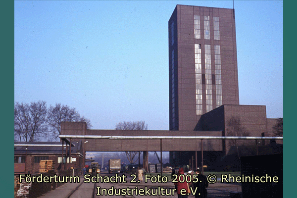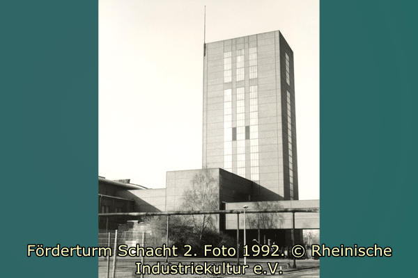 Der Förderturm von 1950 wurde 1964 von Bochum nach Essen umgesetzt. Es ist ein typischer Vertreter der von Fritz Schupp nach dem Zweiten Weltkrieg entstandenen Fördertürme in Stahlfachwerkbauweise. Zudem überliefert der Turm einen der Gründungsschächte der Zeche Zollverein.