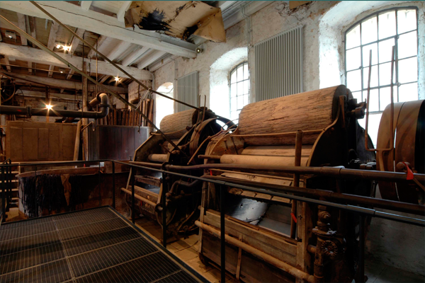 - Es sollte so viel wie irgend möglich von der alten Bausubstanz erhalten bleiben: Wo ein Eingriff also nicht zwingend erforderlich war, wurde dieser unterlassen. Wenn Reparaturen oder Erneuerungen notwendig waren, wurden diese streng nach historischem Vorbild durchgeführt. Sehr viele der Sanierungsarbeiten kann man daher heute kaum noch in der Fabrik erkennen, so material- und herstellungsgerecht, so vorsichtig sind sie durchgeführt: etwa die aufwendige Fundamentsanierung, die Holzschutzbehandlung der gesamten tragenden Holzkonstruktion, die partielle Erneuerung des Holz-Estrichs, der Dächer und des Wandputzes.