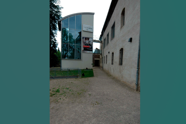 - Alle modernen Funktionen und Bedürfnisse des Museumsbetriebs – Kasse, Laden, Cafeteria, Räume für Sonderausstellungen, Veranstaltungen, Museumspädagogik, Verwaltung und Werkstätten, die Haustechnikzentrale und die Hausmeisterwohnung – fanden nicht in dem historischen Gebäudeensemble der Tuchfabrik, sondern in einem Neubau mit 1900 m² Nutzfläche auf dem benachbarten Gelände Platz.