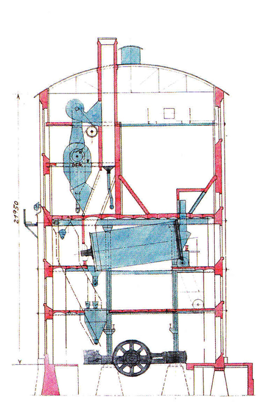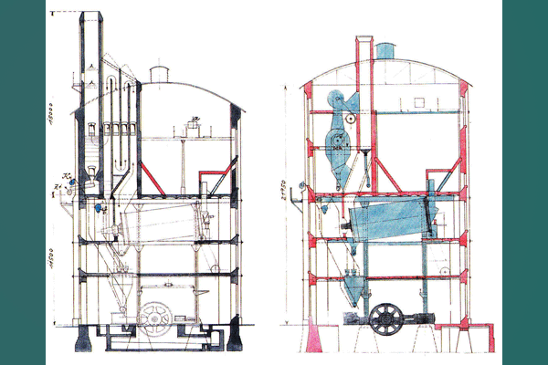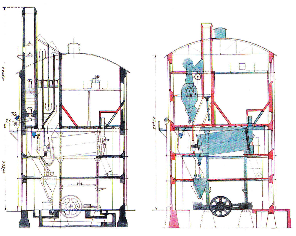 Schnittzeichnungen durch das Trocken- und Pressenhaus