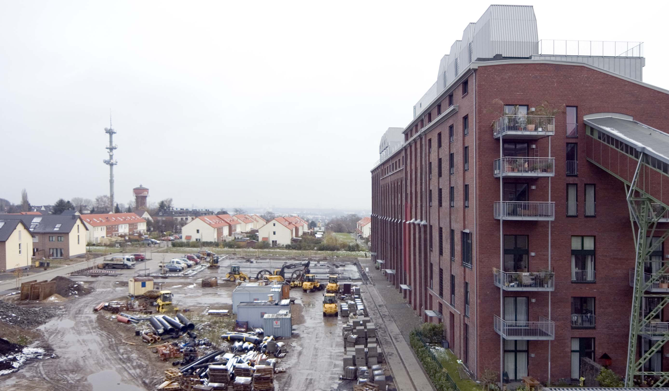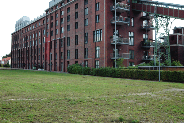 Auch heute noch werden die historische Werksanlage wie auch der überwiegend nach 1945 entstandene Stadtteil geprägt durch das in Ost-West-Richtung erbaute Pressen- und Trockenhaus. Werkstatt, das Kühlhaus I, das Kesselhaus und die Elektrische Zentrale sind rechtwinklig nach Süden darauf ausgerichtet. Der Nassdienst ist als Solitär dem Trocken- und Pressenhaus vorgelagert und mit diesem durch eine Bandbrücke verbunden. Auch im Norden der Anlage bestand eine solche Struktur rechtwinklig an den Hauptbau anschließender Bauten und Funktionsteile. Die auf den Nassdienst zuführende Schrägbandbrücke deutet dies noch an.