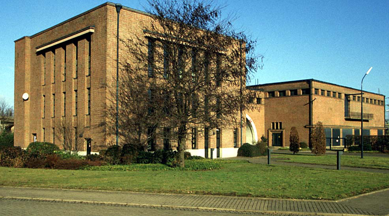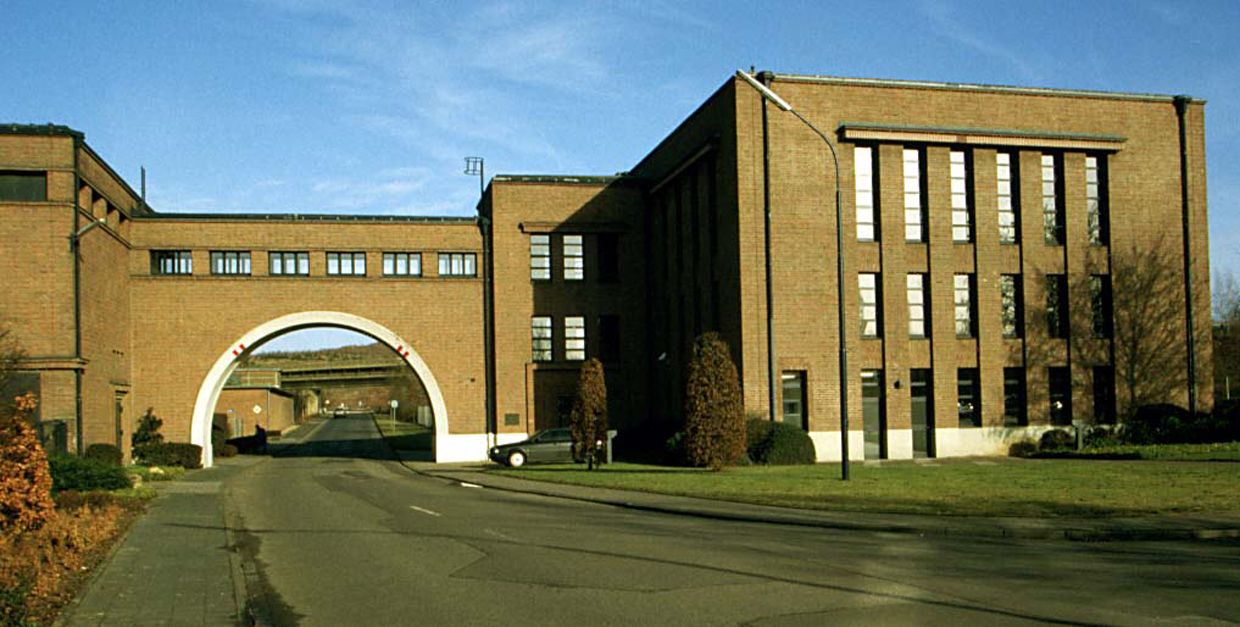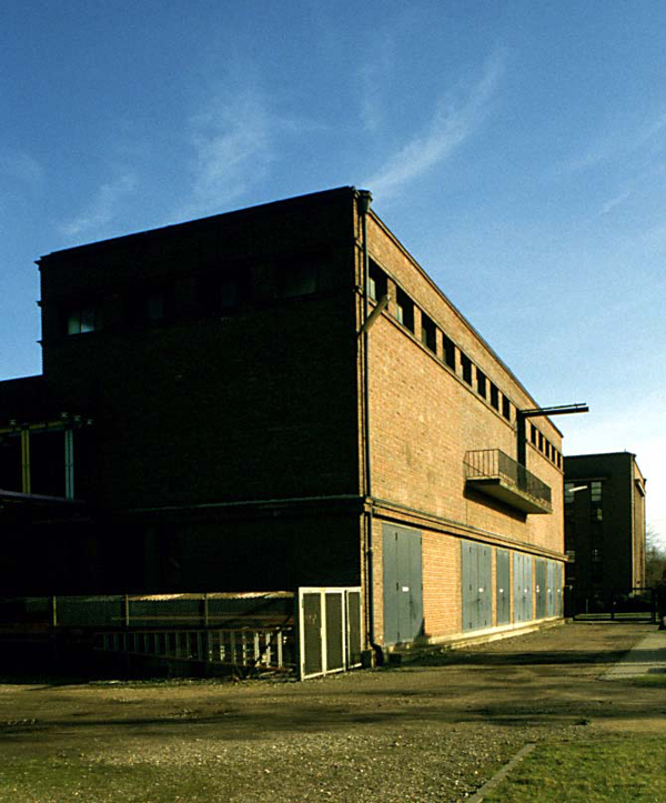 Erhaltene Baugruppe des Kraftwerks von der Erftseite mit der Schaltwarte im Vordergrund
