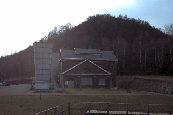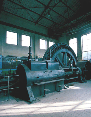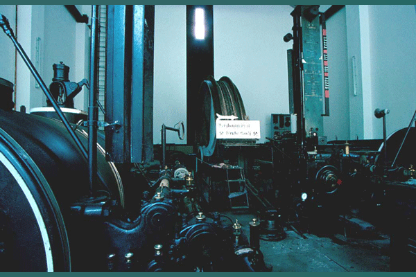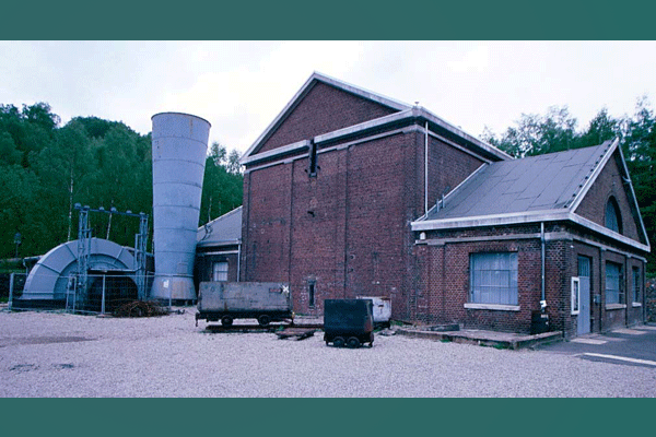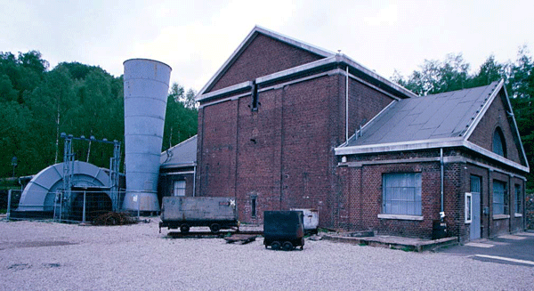 Fördermaschinen- und Lüftergebäude, links der Radialventilator. Foto: 2002