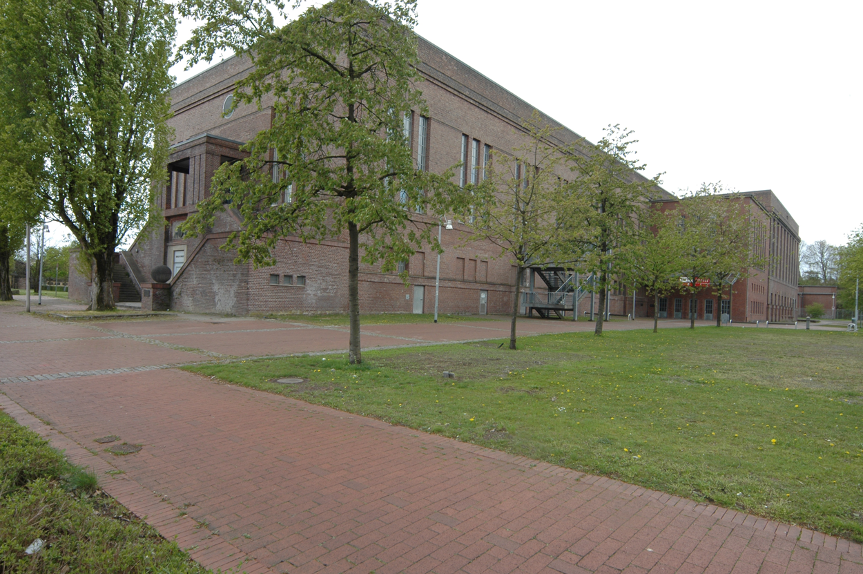Der an der Südwestecke gelegene turmartige Baukörper zeigt noch am deutlichsten die Formensprache Alfred Fischers mit den kräftigen Horizontalgesimsen und zurückliegenden Fensterbrüstungen, so daß die Fensterpfeiler wie Stutzen wirken. Im Erdgeschoß sind die beiden äußeren Fenster jedoch dazugekommen und in der oberen Zone waren die Fenster wie horizontale Lichtbänder ausgebildet. Der anschließende, dreigeschossige Baukörper mit 20 Achsen lehnt sich nur mit seinem profilierten Traufgesims noch an die ursprüngliche Gestaltung an. Die schlichte Lochfassade, in der nur der Eingangserker des Haupteingangs mit großem Treppenhausfenster und ein zweiter Eingangserker für einen Nebeneingang betont sind paßt sich im Charakter den Bauten der HD-Anlage an. Die Fassadenverblendung mit flach aufgelegten, glasierten Ziegelsteinen ist noch eine Reminiszenz an Backsteinarchitekturen der 1920er Jahre. 1955 wurde an das Verwaltungsgebäude ein Quertrakt angefügt.