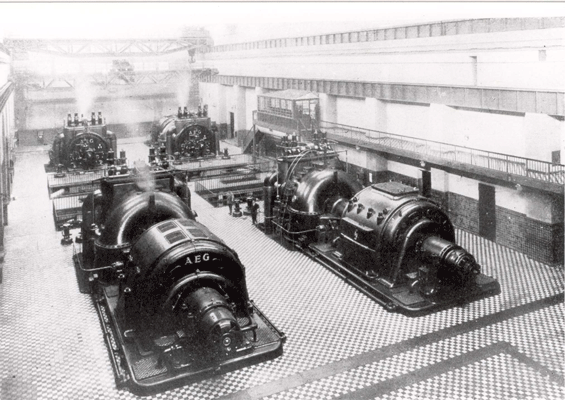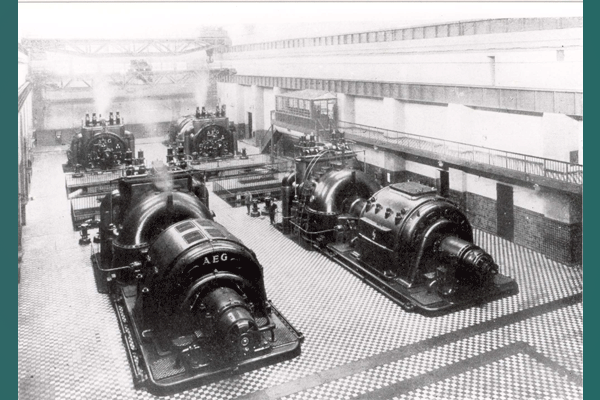 Maschinenhaus, 50 MW-Sätze. Quelle: Goldenberg-Werk Archiv