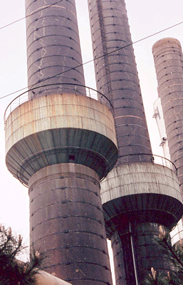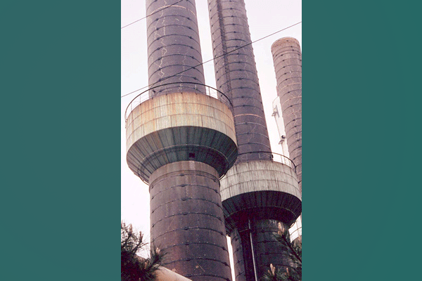 Schornsteine mit Wasserhochbehältern. Foto: Nesseler