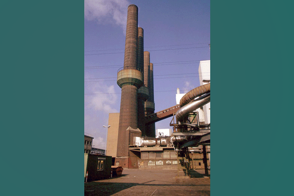Den Kesselhäusern zugeordnet waren jeweils zwei Schornsteine, die als „die 12 Apostel„ in die Literatur eingingen. Die 110 Meter hohen Schornsteine wurden 1929 - 30 auf 126 Meter erhöht. Vier dieser Schornsteine, davon drei mit kombinierten Wasserhochbehältern sind erhalten (in 1970er Jahre auf 80 Meter reduziert).